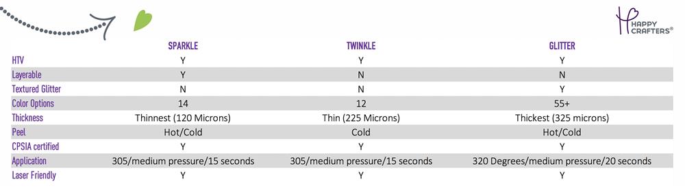 So what is the difference between these three types of glittery iron on vinyl?