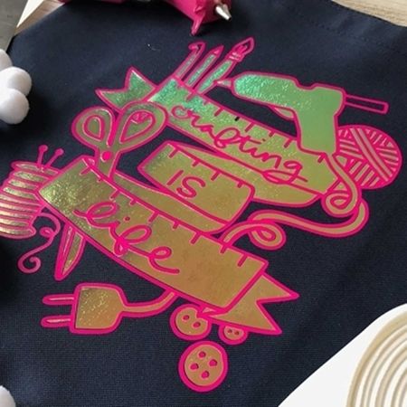 12" x 19" sheet of Happy Face Metallic Iron-On Vinyl designed for applications to cotton, polyester, and cotton/poly blends for a touch of shine. Color: Kaleidoscope Shine